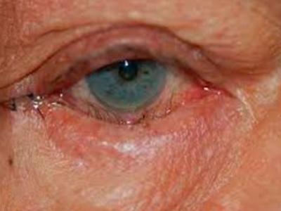 2.- quirurgico: Se hace cuando el grado de eversion o inversion del o los parpados no se puede corregir con tratamiento medico. Consisten en le reposición del tarso, por una incisión realizado bajo la línea de las pestañas, que se prolonga hacia el pliegue del canto externo. Se fija el tarso con suturas al reborde orbitario externo y se realiza una fijación de la aponeurosis al tarso del párpado inferior.